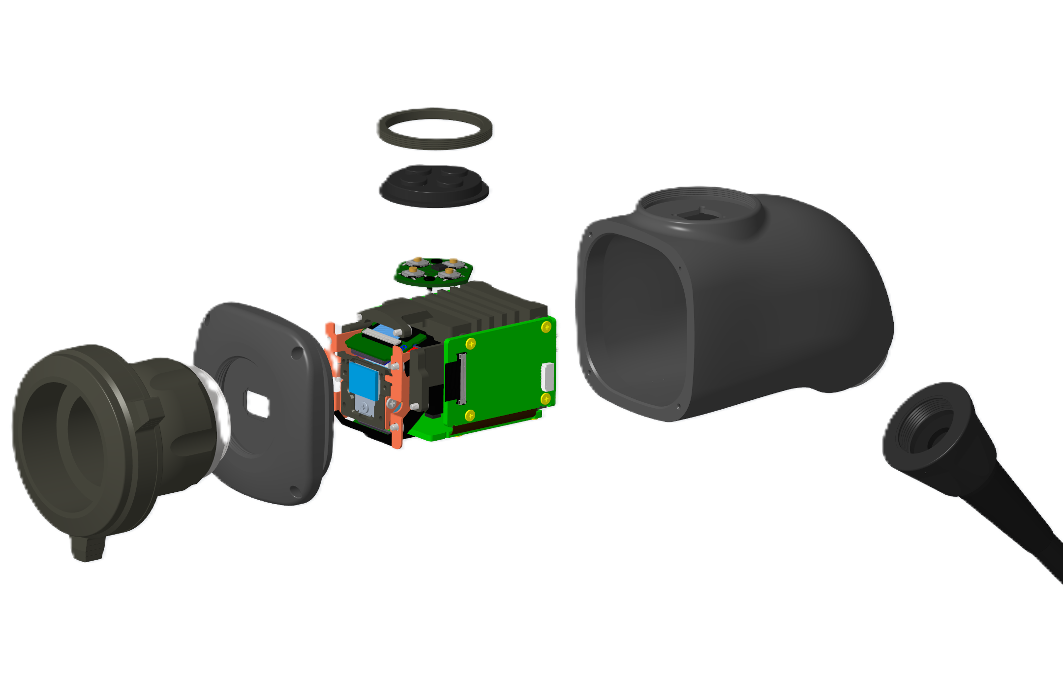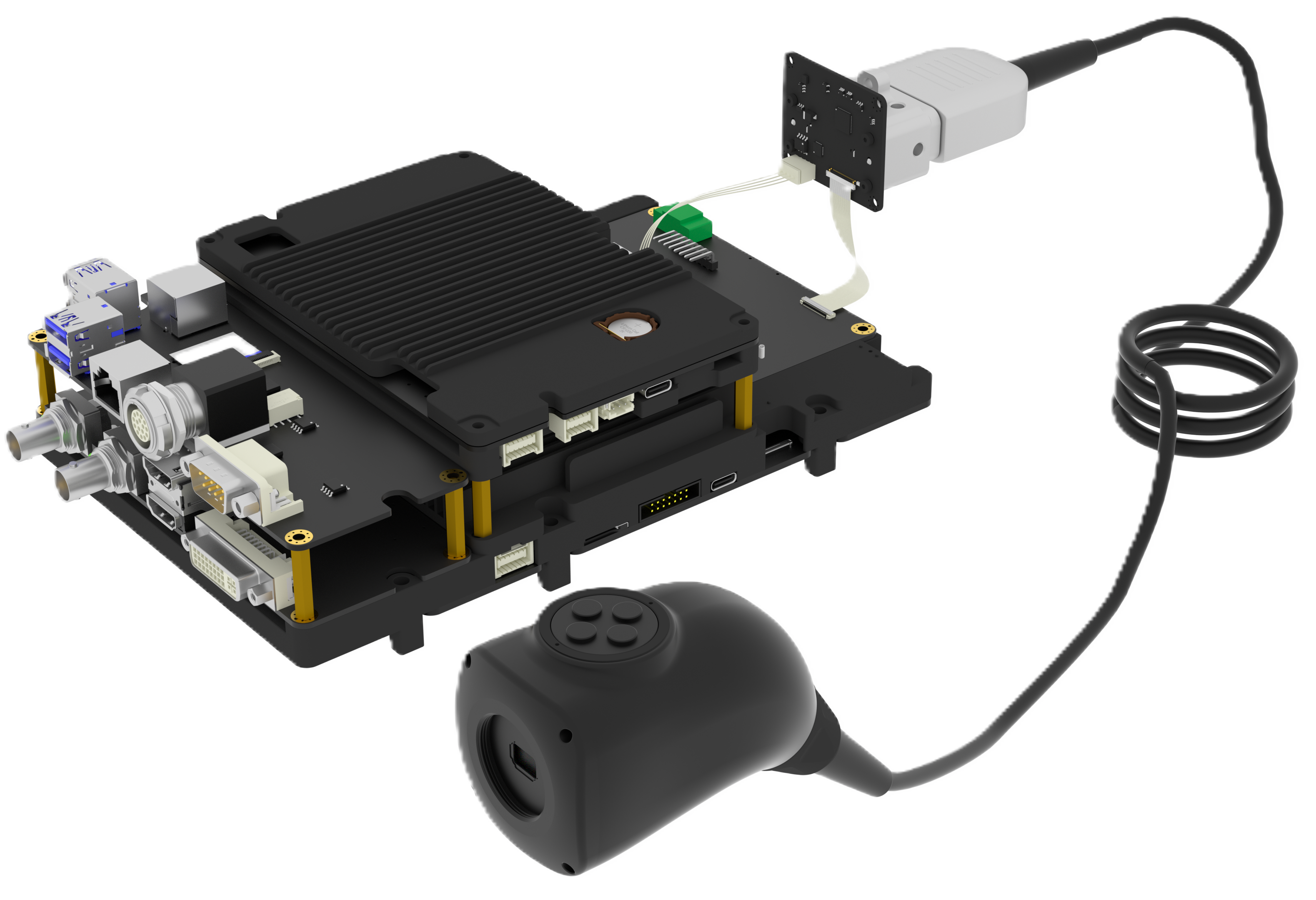 多个模块化的全铝散热器结合,高精度切合 PCB电路板元器件,在振动、粉尘恶劣环境下保持散热稳定性,满足UL94V0等严格安全标准。 最终使三晶片摄像头支持苛刻的医疗高温高压消毒标准。