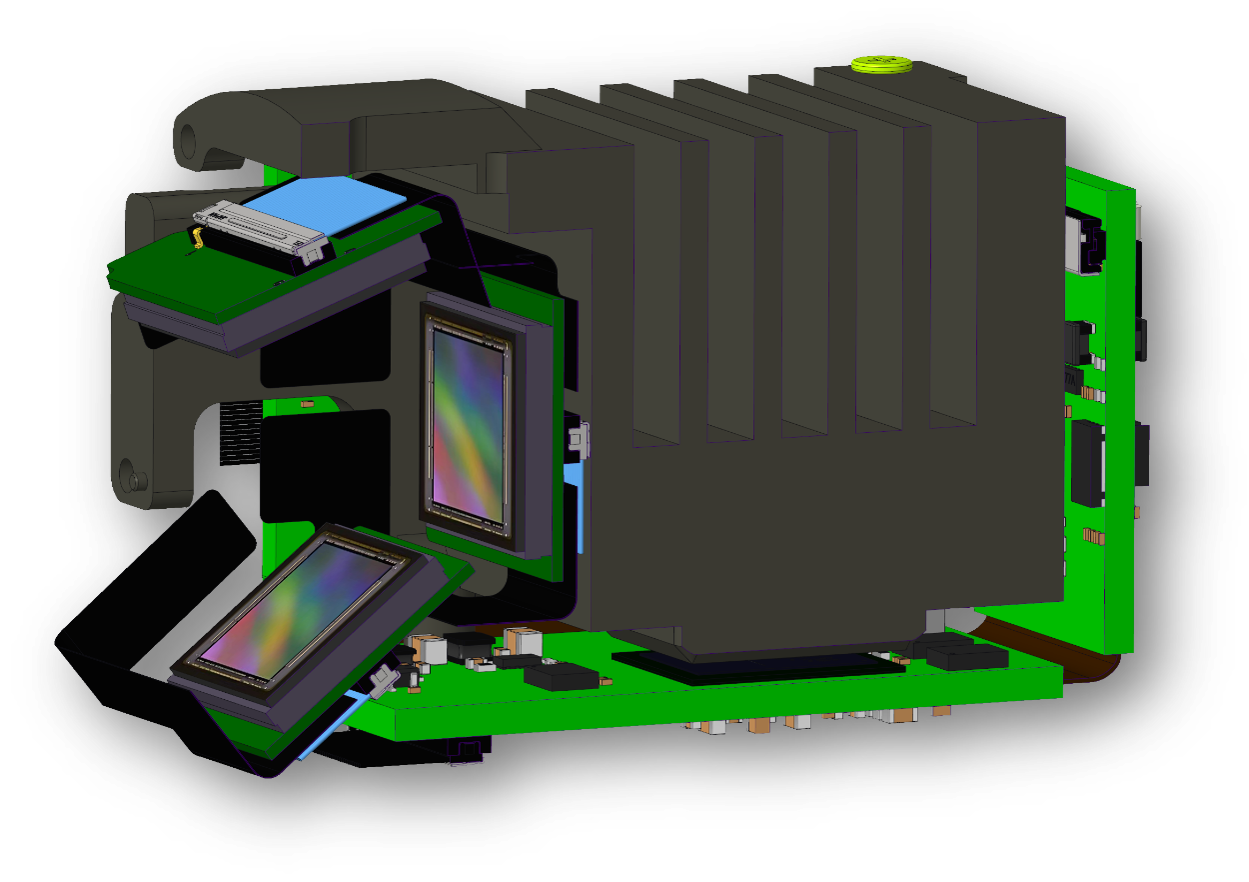 本摄像系统搭载SONY原装三晶片4K摄像头模组,采用3颗原生4K的传感器。 后端搭配XILINX的FPGA图像实时处理系统。