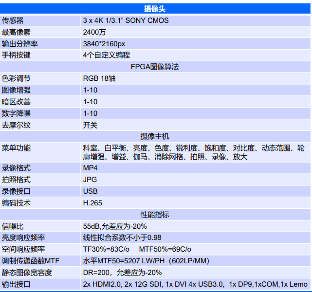 是全球唯一一款已经量产适用于医疗内窥 镜和外科手术显微镜的三晶片4K摄像系统。
